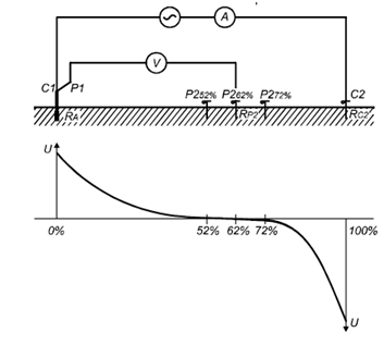 ?接地體和電壓探頭P2(62%)之間的距離=C2的距離×0.62